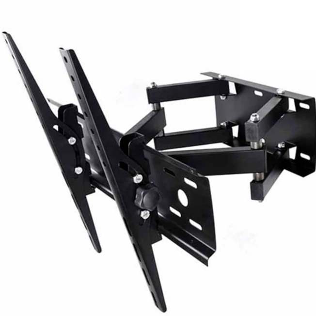 مناسب برای تمامی انواع تلویزیون که جای پیچ پشت آنها 30×30 و 20×20 CM باشد جنس: فولاد فاصله از دیوار در حالت باز 36 سانت، در حالت بسته 9 سانت مفاصل قوی تقویت شده و استحکام مناسب دارای استاندارد VESA , iso9001 و برچسب استقامت سازه قابل تحرک به تمام جهات بالا، پایین، چپ، راست جلو و عقب نصب آسان قابلیت نصب تلویزیون در کنج دیوار و داشتن برشور راهنمای نصب و لوازم کامل نصب نکته: این پایه براکت برای تلویزیونهای تا 65 اینچ طراحی شده ولی نکته مهم جهت استفاده، ابعاد شاسی پشت تلویزیون است. برای تمامی تلویزیونهای تا 65 اینچ که شاسی 10×10 و 20×20 و 30×30 سانت دارند میتوان از این براکت استفاده کرد