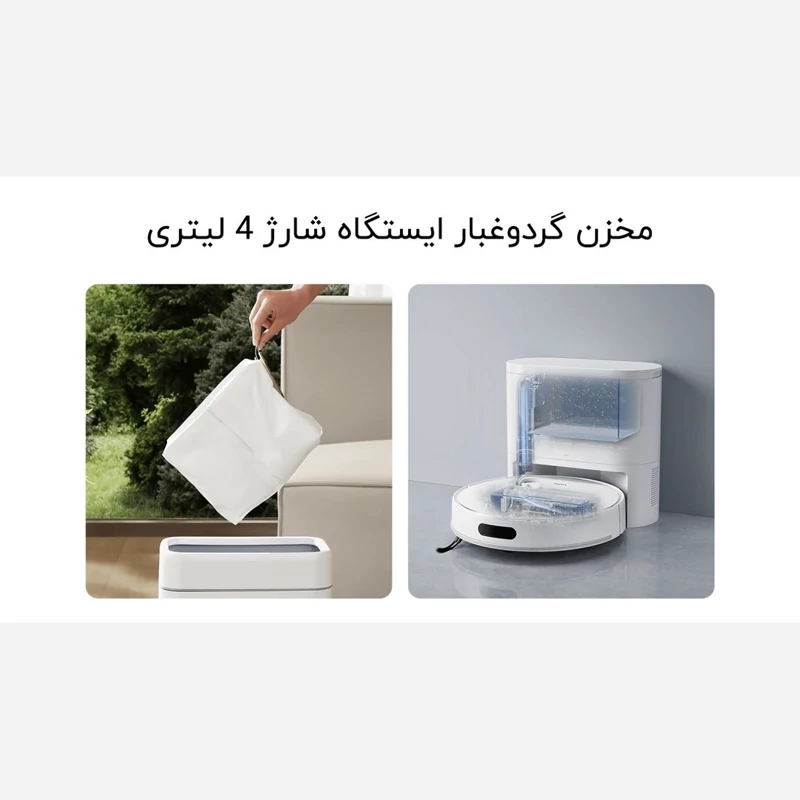 ابعاد پایه شارژ جارو رباتیک:340x326x160 میلیمتر ابعاد جارو رباتیک :97x340x340 میلیمتر کیسه جاروبرقی:HEPA توان مکش:10000 پاسکال نوع فیلتر خروجی:HEPA قدرت موتور:70 وات مدت زمان شارژدهی (Runtime):180 دقیقه متراژ قابل پوشش در هر شارژ:200 مترمربع ظرفیت باتری :5200 میلی آمپر ساعت نوع موتور:براشلس (Brushless) امکانات ویژه جارو رباتیک: تی کشیدن،جمعآوری مو،نظافت نقاط کنج، بازگشت خودکار به پایه شارژ قابلیتهای پایه شارژ: تخلیه آب کثیف شارژ جارو سایر توضیحات: ایستگاه پایه همه کاره – مخزن آب بزرگ 4 لیتری – حداکثر قدرت مکش قوی 10000Pa – بلند کردن هوشمند لنت های پاک کن – فناوری اجتناب از موانع زاویه باز – ناوبری لیزری LDS – کنترل از راه دور از طریق برنامه Mi Home/Xiaomi Home – قادر به کار با آستانههای درب تا 20 میلیمتر. قابلیت نقشهبرداری هوشمند، تعیین مناطق ممنوع (No-Go Zones)، تنظیم حالت طیکف، مدیریت از راه دور از طریق اپلیکیشن. نوع سنسورها:تشخیص سطوح، ضد برخورد، ضد سقوط، تشخیص ضخامت فرش سیستم مسیریابی:لیزری (LiDAR) نحوه اتصال و کنترل:اپلیکیشن موبایل WiFi توضیحات سازگاری:کنترل توسط اپلیکیشن Xiaomi Home / Mi Home، پشتیبانی از دستیار صوتی مانند Amazon Alexa و Google Assistant. دارای فناوری حذف موهای پیچیده از برس اصلی، قابلیت انتخاب چهار حالت قدرت مکش (Quiet, Standard, Strong, Turbo) مناسب برای سطوح:سرامیک، پارکت، فرش کمپرز یا موکت نحوه جمعآوری زباله مخزن زباله گنجایش مخزن زباله جارو 4 لیتر گنجاش مخزن آب جارو 0.21 لیتر